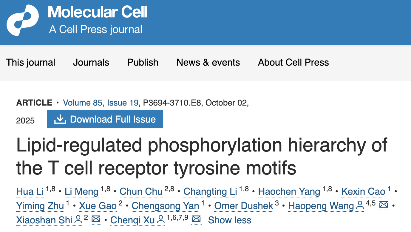 Mol Cell | 揭示T细胞抗原受体信号多样性的脂质静电调控机制