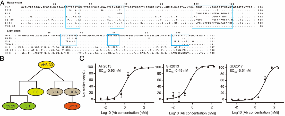 PNAS | 发现靶向H7亚型禽流感病毒血凝素头部独特保守表位的广谱中和抗体