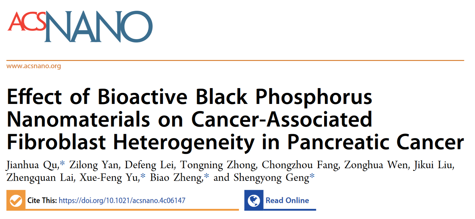 ACS Nano | 黑磷调控胰腺癌肿瘤相关成纤维细胞活化