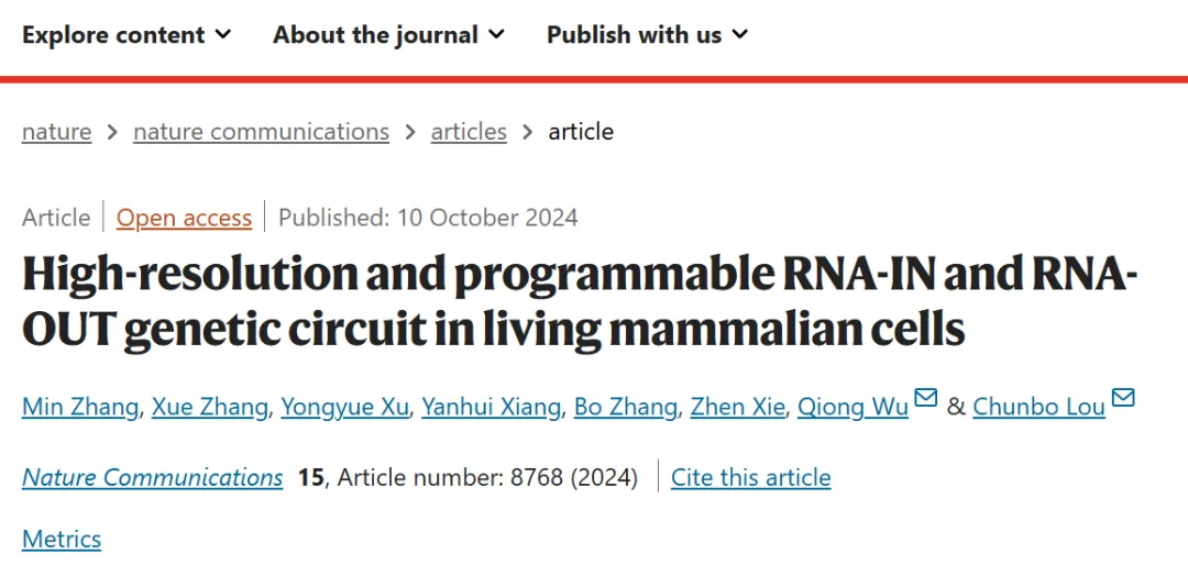 10月10日,中国科学院深圳先进技术研究院合成生物学研究所娄春波课题组与清华大学生命科学学院吴琼课题组合作,在Nature Communications上发表动态感知和激活任意RNA表达的基因线路的最新研究成果,题为“High-resolution and programmable RNA-IN and RNA-OUT genetic circuit in living mammalian cells”。