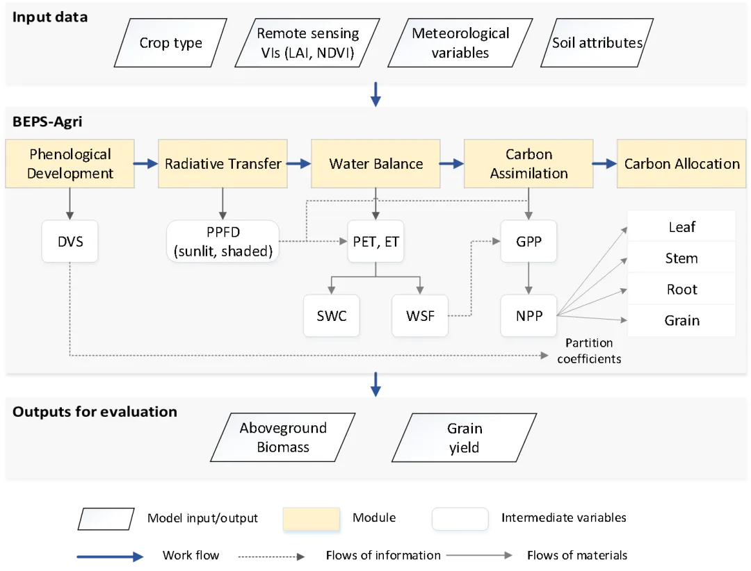 结合空间卫星观测与动力学过程模拟的农业系统定量建模框架