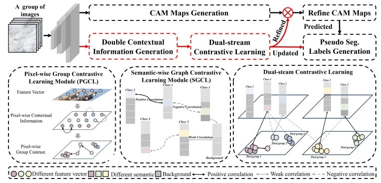 实现了同时利用像素级和语义级跨影像上下文信息的学习。DSCNet的核心创新在于其能够同时处理像素级和语义级上下文信息,为弱监督学习在其他计算机视觉任务中的应用提供了新思路。