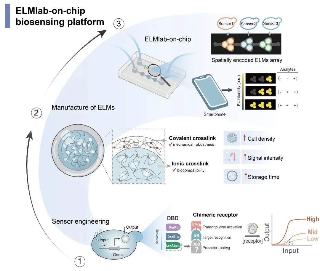 通过与该研究相似的转录因子重构结合合成启动子方法,以及对于转录因子表达量、DNA结合结构域及启动子模块的精准设计,可以在酿酒酵母及大肠杆菌中对于任意转录信号进行优化。基于该方法,陈业团队与湖南大学的合作成果,以"On-Chip Engineered Living Materials as Field-Deployable Biosensing Laboratories for Multiplexed Detection"为题,已在Advanced Functional Materials期刊上发表,中国科学院大学硕士黎欣睿完成了细胞传感器的开发。