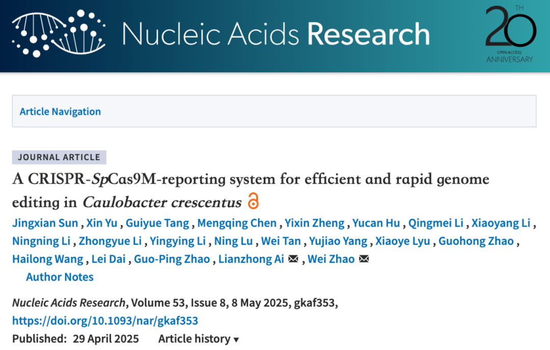 近日,中国科学院深圳先进技术研究院合成生物学研究所赵国屏院士,赵维研究员团队联合上海交通大学在Nucleic Acids Research上发表题为“A CRISPR/SpCas9M-reporting system for efficient and rapid genome editing in Caulobacter crescentus”的方法论文,针对上述问题,开发了一套基于CRISPR/SpCas9M的基因编辑报告系统,实现了对新月柄杆菌高效、快速且无痕的基因编辑。该项工作不仅为新月柄杆菌的遗传操作提供了强有力的工具,也为解决其它难以进行遗传操作的非模式菌提供了新的技术思路和方法学参考。