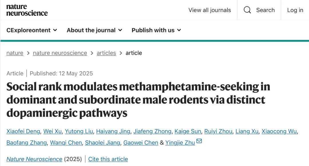 Nature Neuroscience | 深圳先进院揭示大脑中调控成瘾的“油门-刹车”重要机制