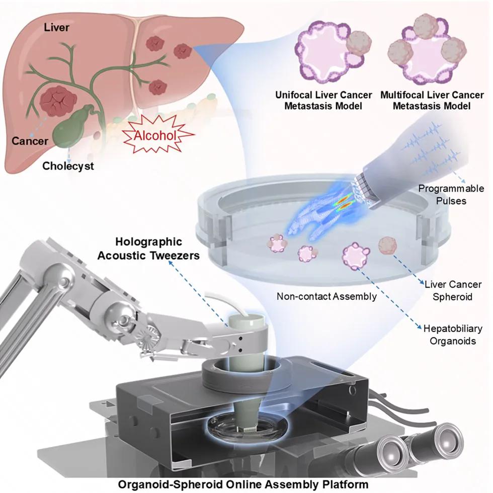 Cell Reports Physical Science | 全息声镊引导下肝癌细胞球向肝胆类器官转移模型的构建