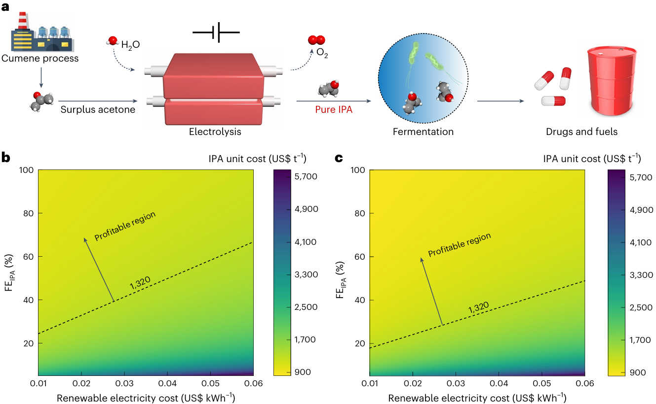 近日,中国科学院深圳先进技术研究院定量合成生物学全国重点实验室于涛课题组与电子科技大学材料与能源学院夏川和郑婷婷教授团队、中国科学技术大学/安徽工业大学曾杰教授团队合作,以处理酚酮产业的副产品丙酮为例,通过构建电催化和生物催化耦合系统,将过剩丙酮以异丙醇(IPA)为媒介...