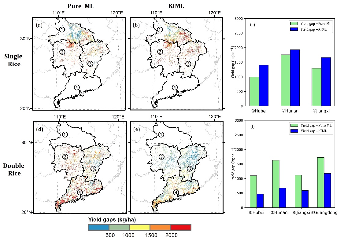论文提出了一种知识引导的机器学习建模框架,有效克服了传统AI模型对目标样本数据的强依赖问题,首次在弱样本条件下实现了对南方单双季稻混作区产量构成的精准识别与未来增产潜力的量化评估。