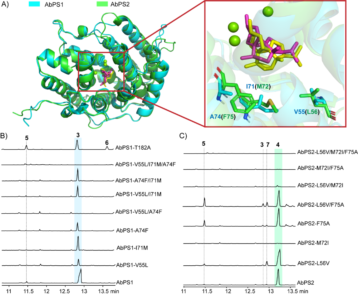 近日,中国科学院深圳先进技术研究院卞光凯课题组和波恩大学Jeroen S. Dickschat课题组合作,在国际期刊Angewandte Chemie International Edition上发表了题为“Biosynthesis of the Red Algal Diterpene Peyssonnosol in Bacteria”的最新研究成果。该研究在细菌中发现了两种二萜合酶AbP...