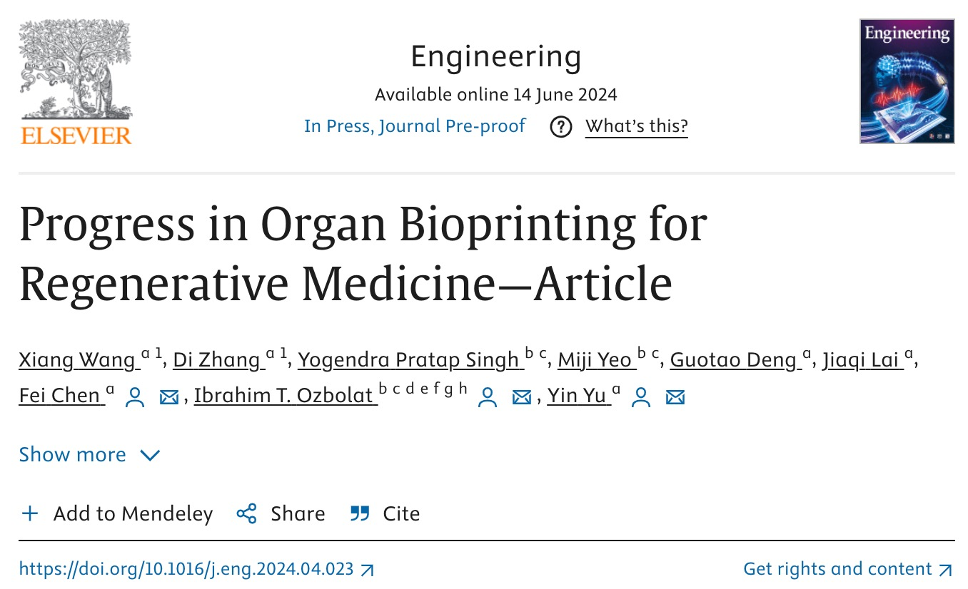 Engineering | 器官生物打印在再生医学领域的最新进展