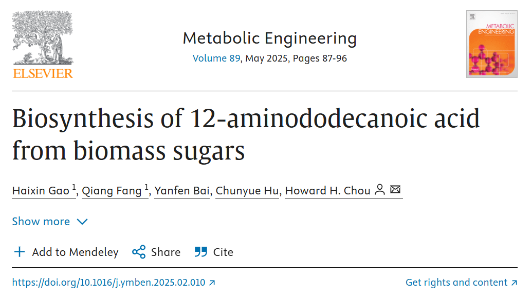 Metabolic Engineering | 利用生物质糖实现聚酰胺12的绿色合成