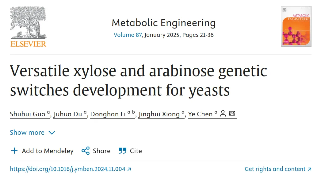 近日,中国科学院深圳先进技术研究院陈业团队于国际期刊Metabolic Engineering发表研究论文"Versatile xylose and arabinose genetic switches development for yeasts"。该研究利用来自曲霉菌种的转录激活因子XlnR和AraRA以及细菌转录阻遏因子XylR和AraRR,在酵母中开发了基于廉价诱导剂...
