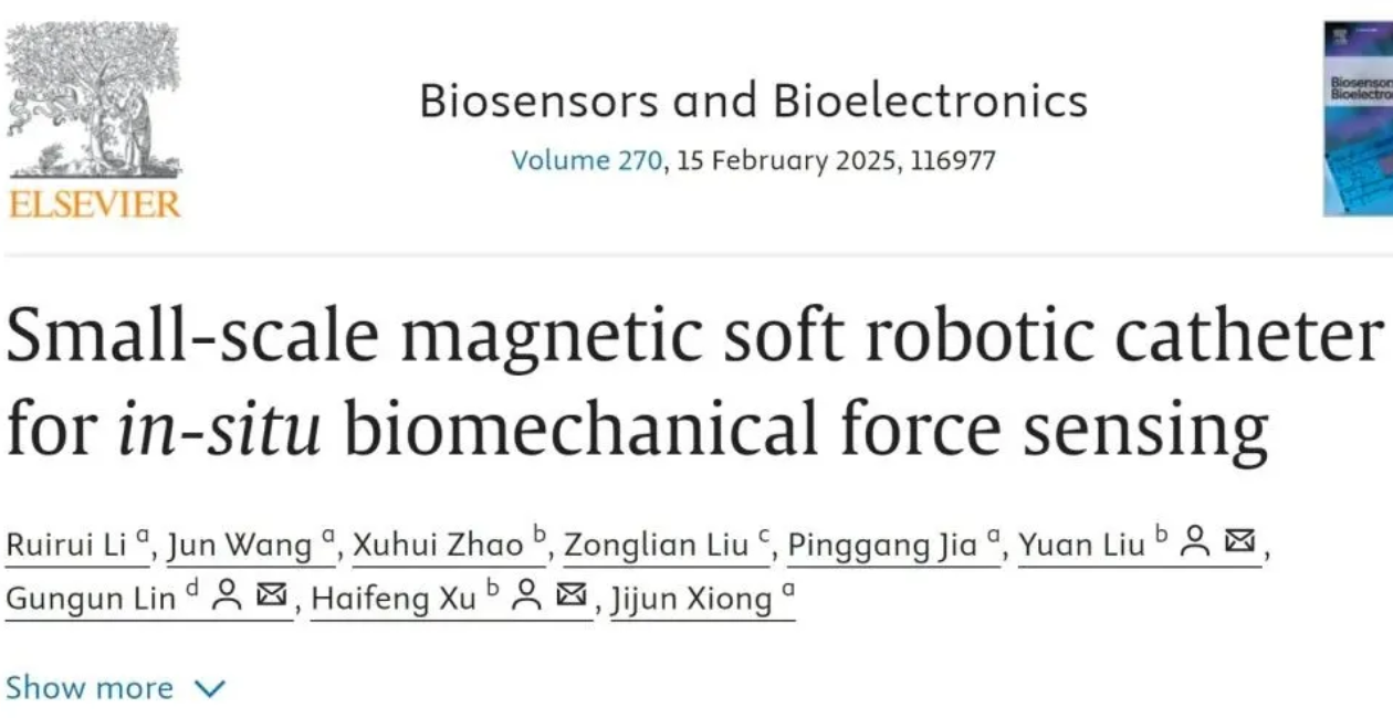Biosensors and Bioelectronics|开发具有原位生物力学传感的小型磁性软机器人导管