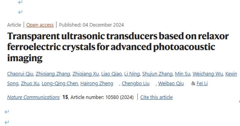 新型超灵敏宽带透明超声换能器助力高质量光声及声光多模态成像