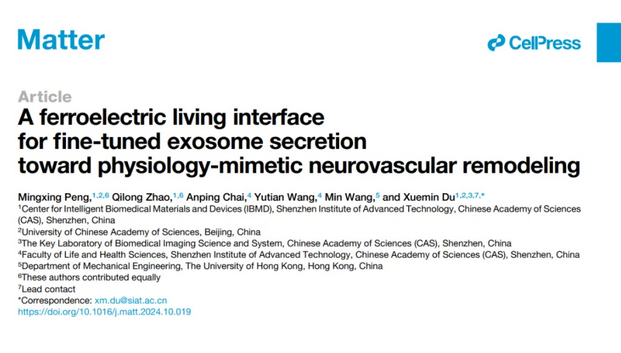 11月21日,中国科学院深圳先进技术研究院智能医用材料与器械研究中心杜学敏研究员团队,在精准调控外泌体分泌的活性界面材料方面取得重要研究进展。