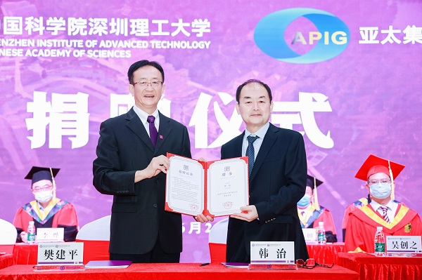 6月24日,中国科学院深圳理工大学(筹,简称中科院深理工)捐赠仪式在中国科学院深圳先进技术研究院举行。深圳亚太控股集团有限公司向中科院深理工捐赠人民币500万元,用以支持中科院深理工人才培养、科学研究、师资建设等。