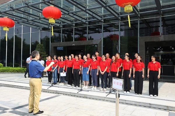 在SIAT教职工合唱团的带领下,在场职工学生共同唱响《爱我中华》、《歌唱祖国》,用嘹亮的歌声为国庆献礼。